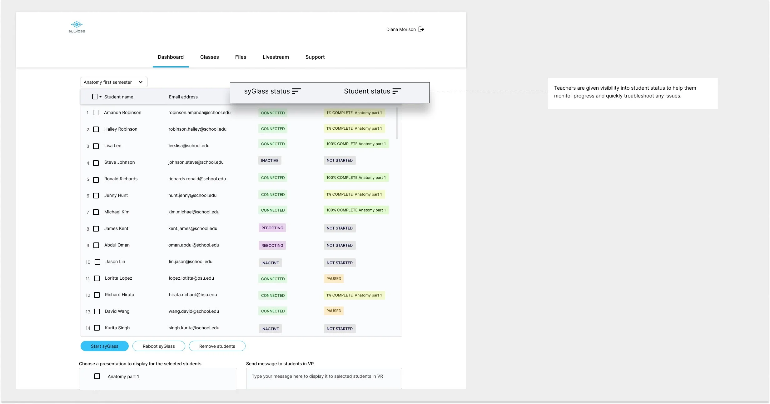 The class creation process initially required significant involvement from syGlass, with teachers depending on the engineering team to set up classes and invite students. To streamline this, I designed a solution that enabled teachers to create classes and invite students directly, giving them greater control and autonomy while enhancing workflow effectiveness.